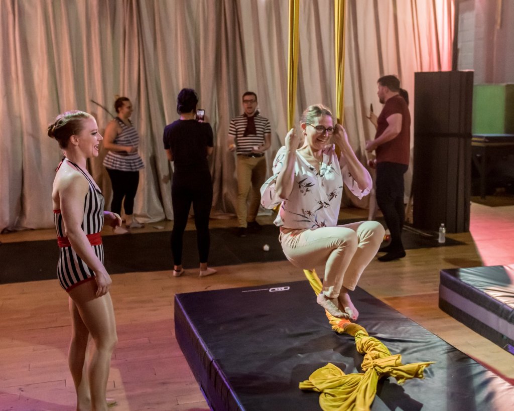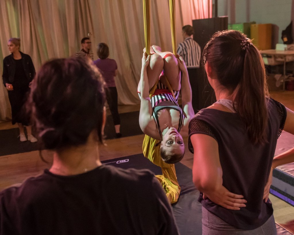 I teach aerial straps, silks, lyra, dance trapeze, bungee, wall-running, and hammock to adults and children.