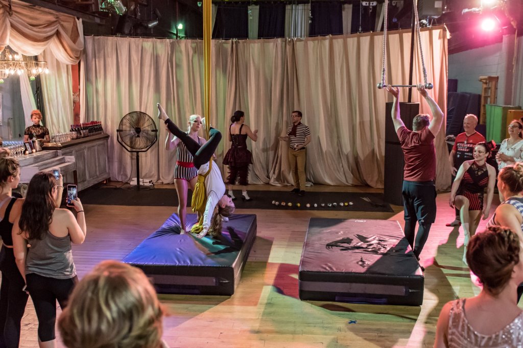 I love sharing the knowledge gained from a lifetime of training and performing with beginners and trained dancers/aerialists alike, challenging students to surprise themselves with their newfound skills and strength.